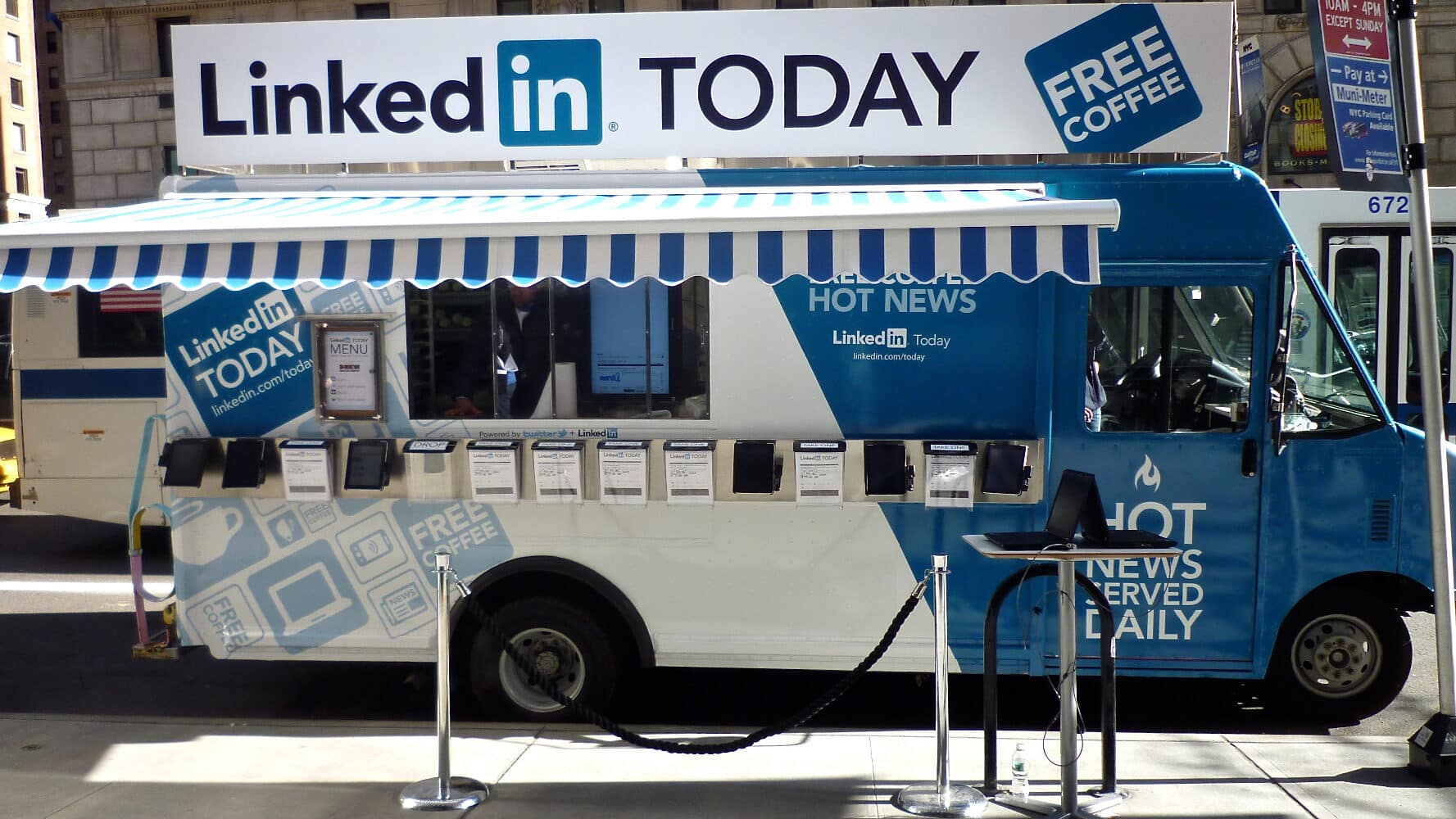 Manifold created LinkedIn Mobile News Cafes—coffee trucks in San Francisco and New York serving morning coffee and ‘Freshly Brewed’ LinkedIn news to professionals.