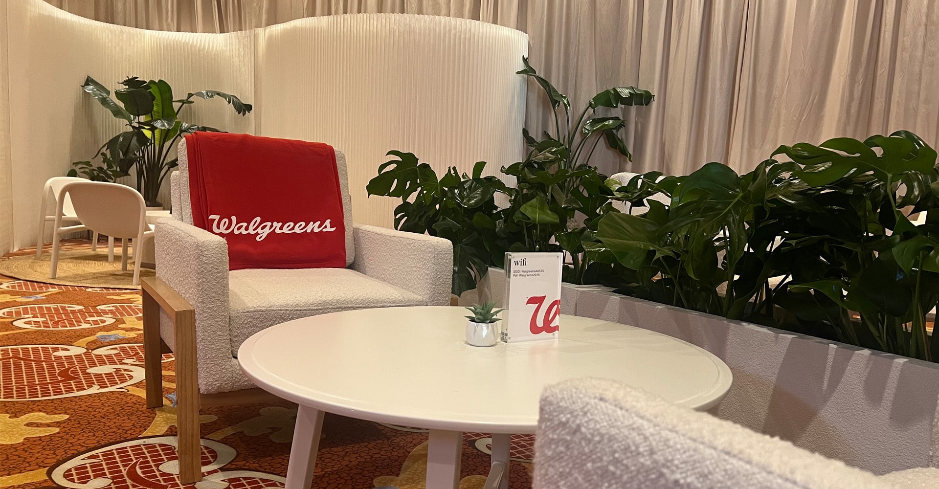 To enable Walgreens to connect and reconnect with Pharma and industry partners, Manifold designed an executive networking lounge where the trade team could host attendees and partners for informal and impromptu conversations. The space featured elements from our modular trade show booth — lounge furnishings, custom fabricated demo pods, and an interactive map experience that invited customers to explore Walgreens reach and impact across the country.